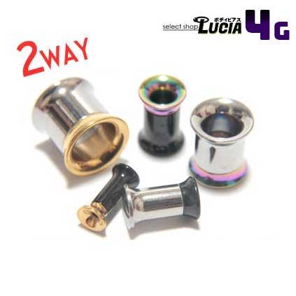 本日P2倍 4G 00G ピアス ボディピアス 2Way バイカラー ダブルフレア アイレット プラグ 金属アレルギー対応 316L 高品質 ステンレス
