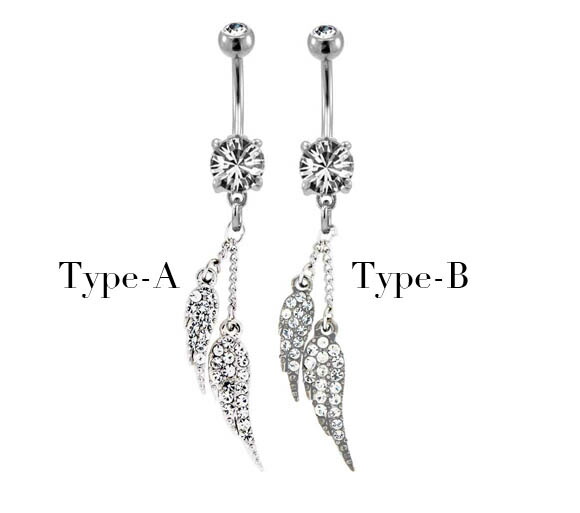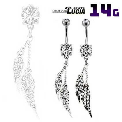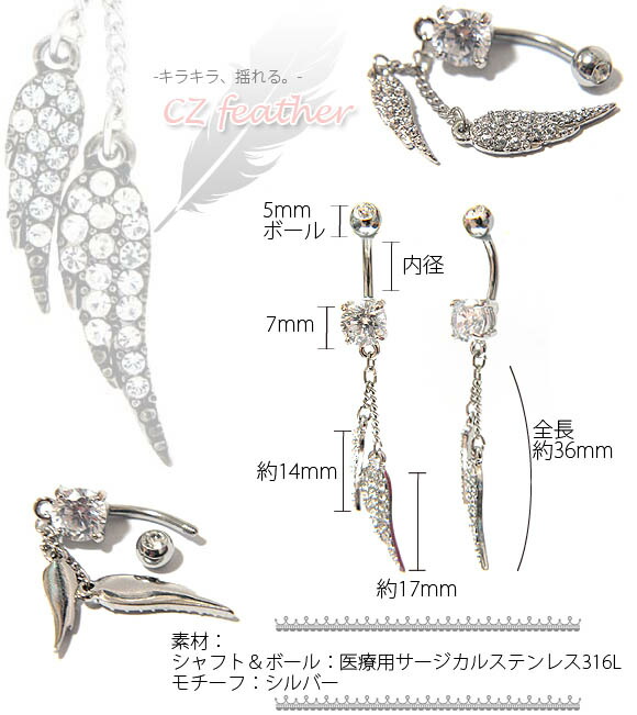 本日P2倍 14G ピアス ボディピアス へそピアス キラキラ 羽根 金属アレルギー対応 316L 高品質 ステンレス