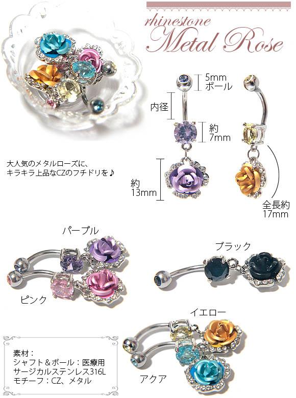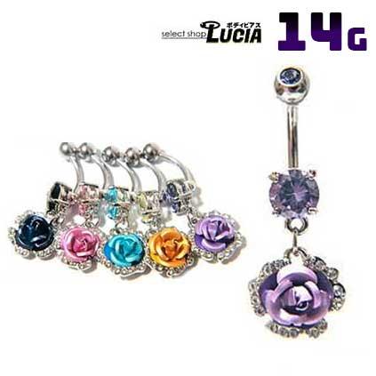 本日P2倍 14G ピアス ボディピアス へそピアス ラインストーン メタル ローズ 揺れる 金属アレルギー対応 316L 高品質 ステンレス