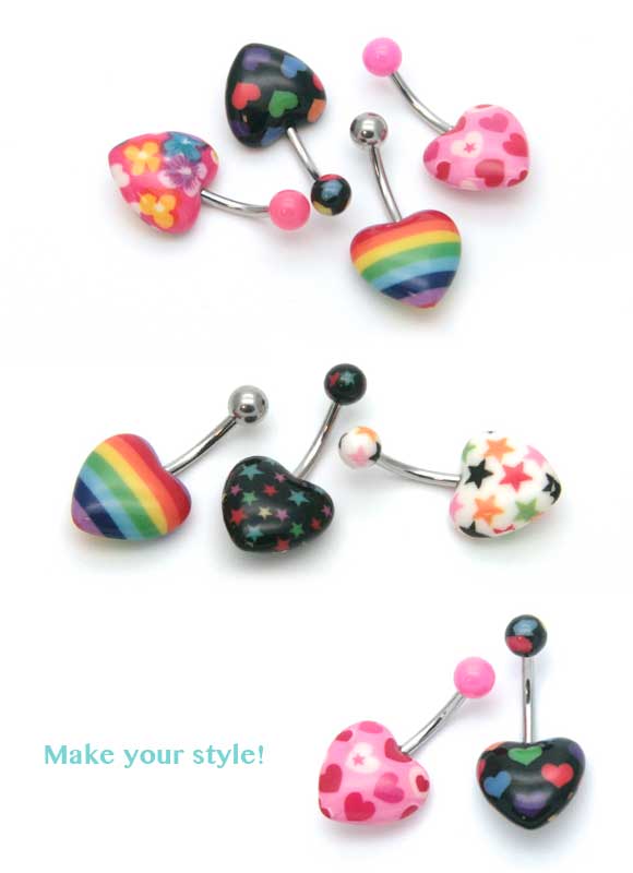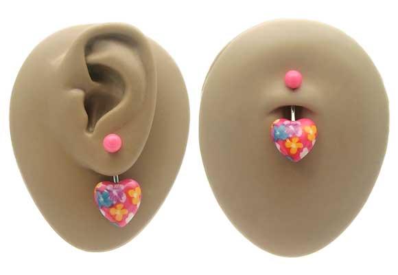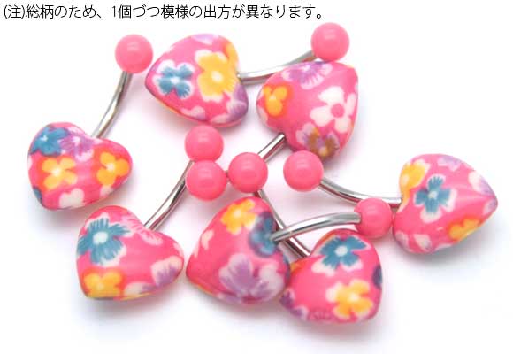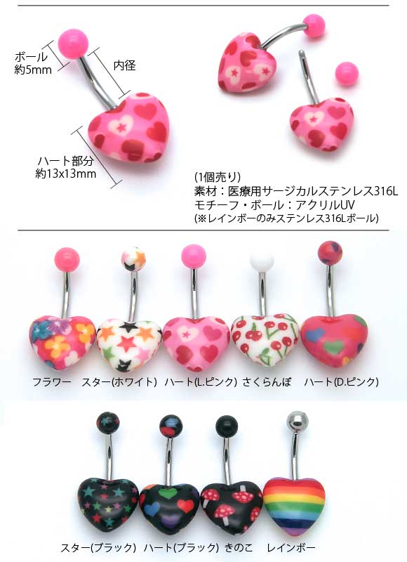 本日P2倍 14G ピアス ボディピアス へそピアス ぷっくりアクリル ハート 可愛い 花柄 金属アレルギー対応 316L 高品質 ステンレス