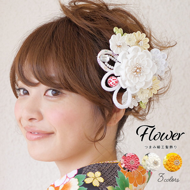 成人式の振袖や卒業式の袴にオススメなつまみ細工の髪飾り。