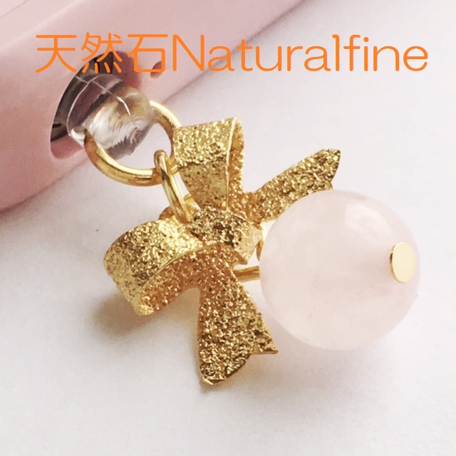 天然石ローズクォーツにゴールドのリボンを付けました。