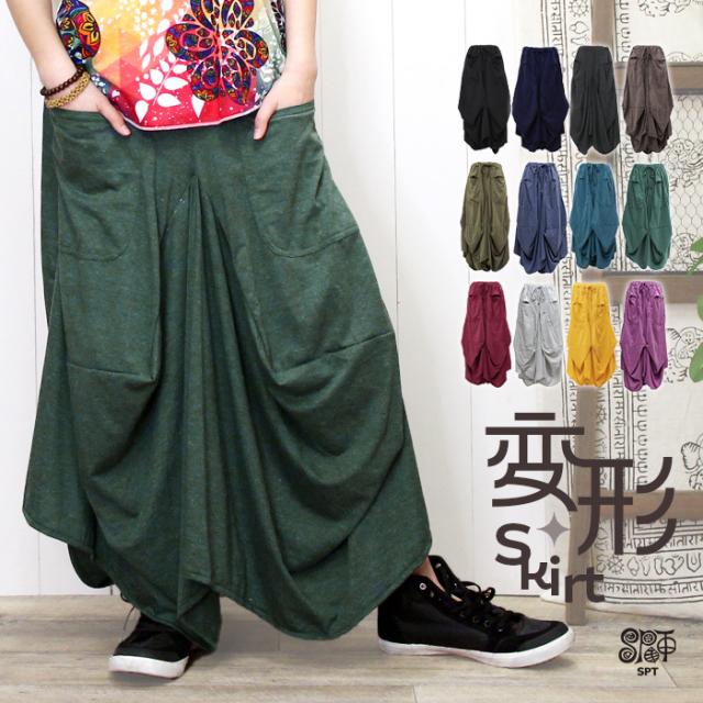 ★一部カラー予約★ 【メール便不可】 ボトムス ロングスカート レディース 体型カバー 30代 40代 501代 【SPT】プレーン&杢カラー変形スカート 2025年秋冬