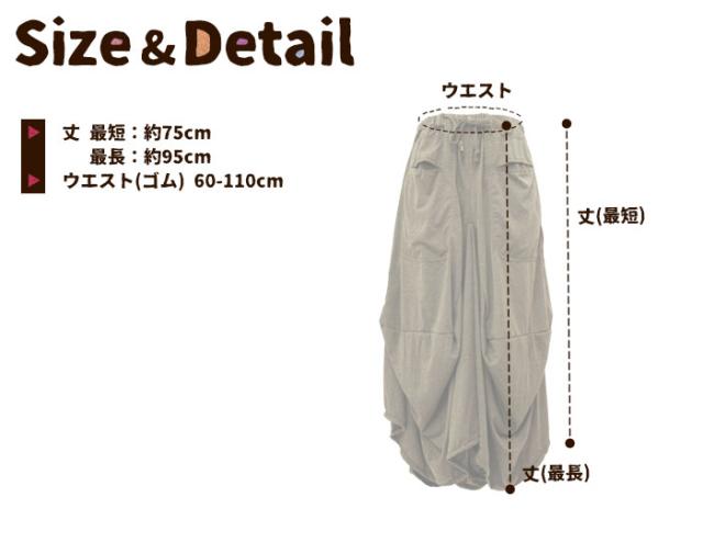 丈最短:約75cm/最長:約95m ウエスト(ゴム・紐)約60-110cm