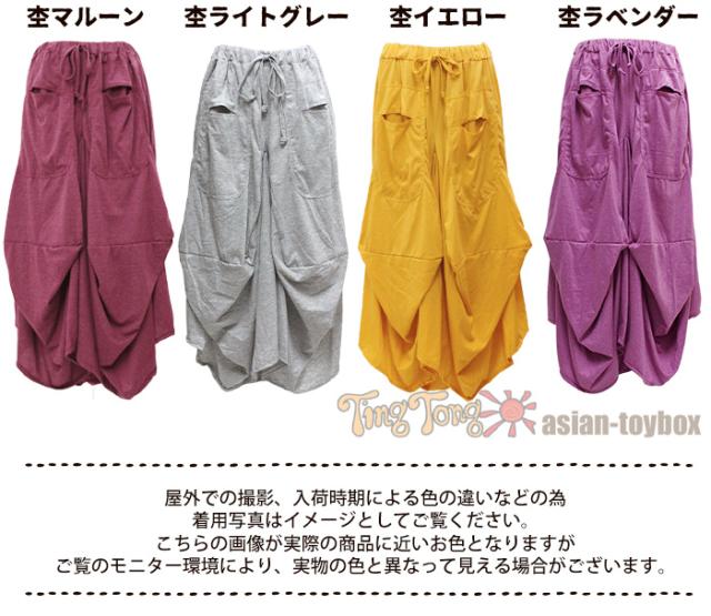 ウエストは総ゴムに紐調節ではきやすく、様々な体型の人に着ていただけます。