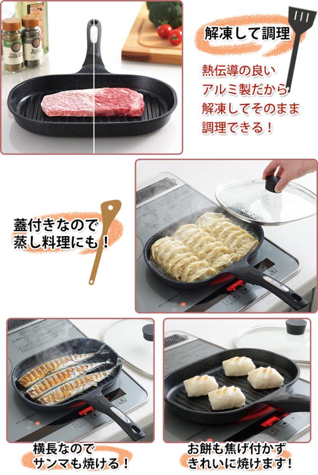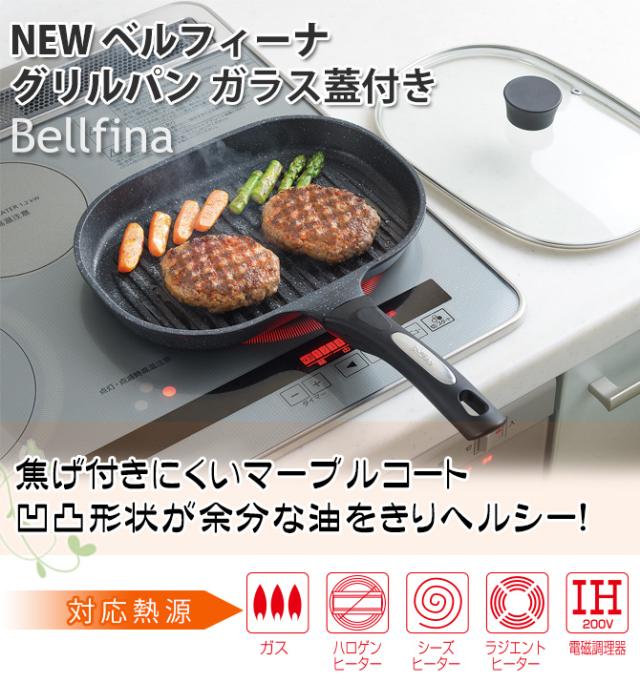 IH対応・ガス対応 フライパン マーブルコート NEW ベルフィーナ グリルパン ガラス蓋付き A-76159