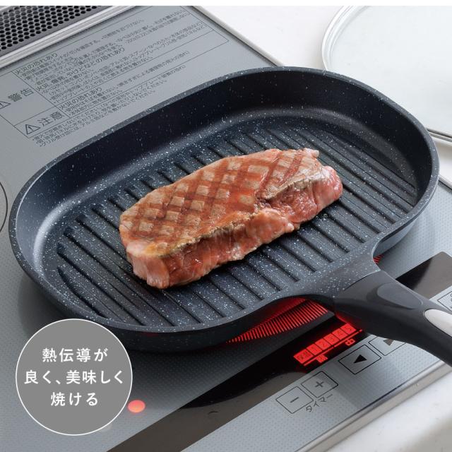 軽くて丈夫で洗いやすい、新設計のNEWベルフィーナシリーズ。底面が、余分な油を切りやすい凹凸形状なので、おいしそうな焼き目が手軽につけられます。
