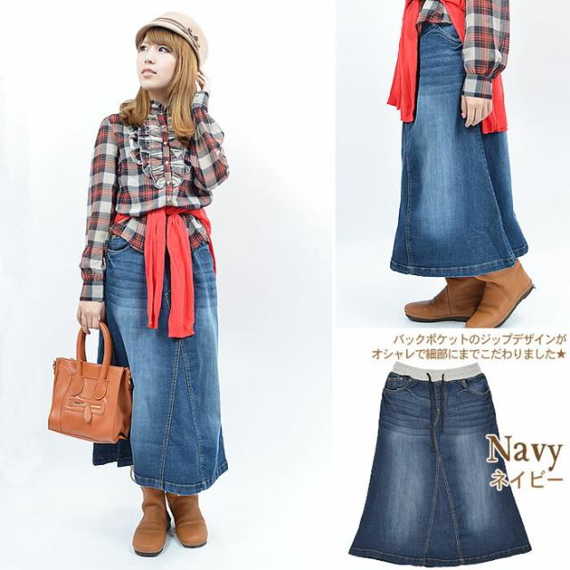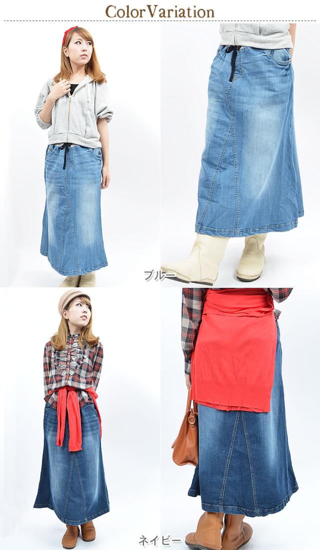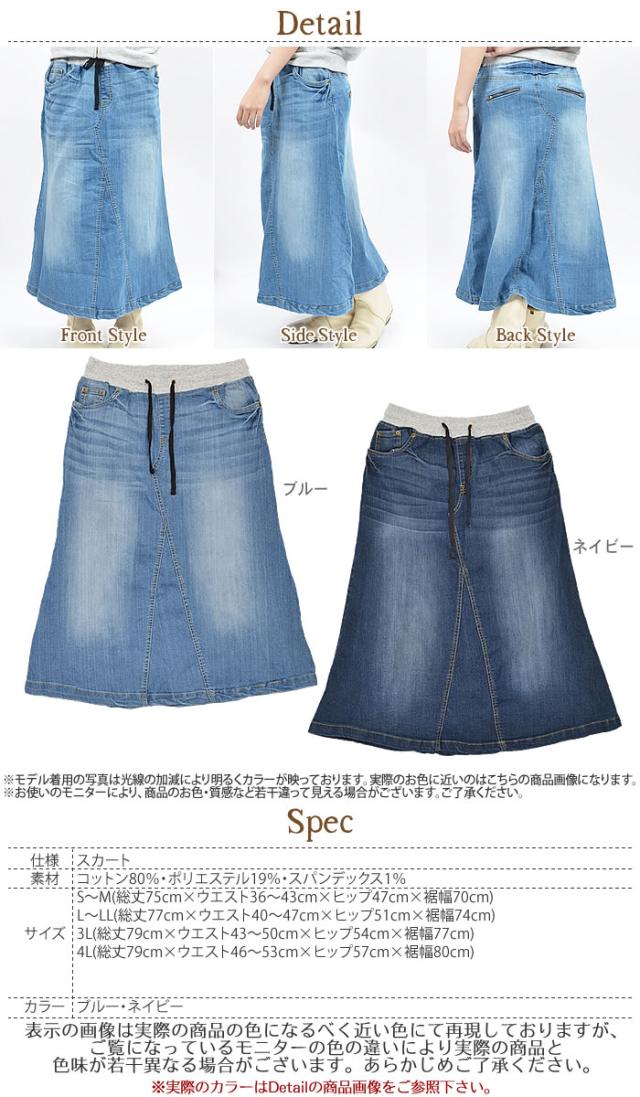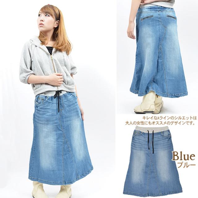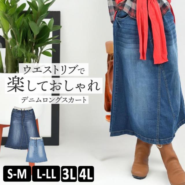スカート デニムスカート ゆうメール便送料無料 ロングスカート デニム ロング ウエストリブ Aライン 5営業日以内入荷 大きいサイズ レディース M L LL 3L 4LLARU ラルー ウエストリブデニムロングスカート