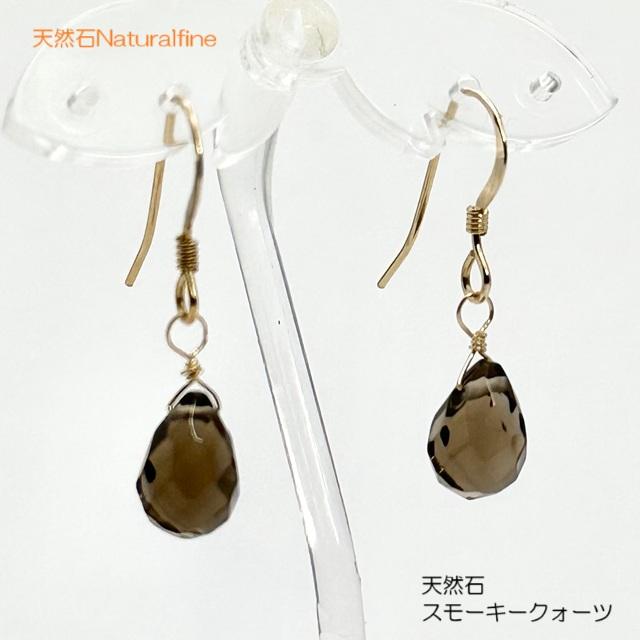 ピアス 天然石 アレルギー対応 パワーストーン スモーキークォーツ 心をリラックス チタン金具 ブリオレット
