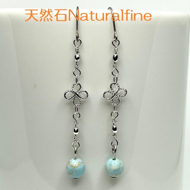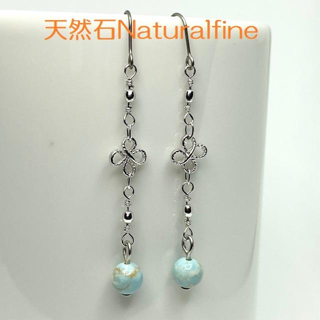 こちらは、ターコイズ(練り玉)にクローバーのチェーンをつけたピアス(イヤリング)になります。