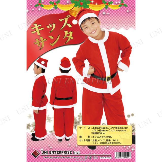 | 商品説明 | かわいいサンタクロースになれる子供用サンタコスチューム4点セットです。起毛素材なので手触りが柔らかく動きやすい衣装です。上着はマジックテープ留めでラクラク着脱♪ベルトの長さも調節可能です。子供会やクリスマスのイベント用衣装にどうぞ ※衣装の下にインナーの着用をおすすめします |