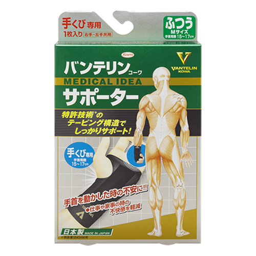 | 検索用文言 | 興和株式会社、バンテリンコーワサポーター、テーピング、階段の上り下り、炊事洗濯、家事、日常の痛み、Mサイズ、手くび専用、手首、立体サポート設計 |