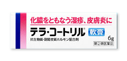 テラ・コートリル®軟膏は優れた抗炎症作用を示すヒドロコルチゾン(副腎皮質ステロイド)とグラム陽性菌および陰性菌などに広い抗菌力を示すオキシテトラサイクリン塩酸塩を配合。化膿をともなう湿疹・皮膚炎に効果的です。