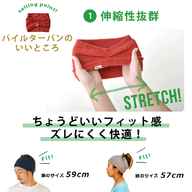 タオルに包まれるような感覚の柔らかいパイルターバンヘアバンド。