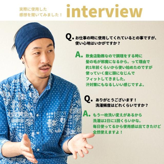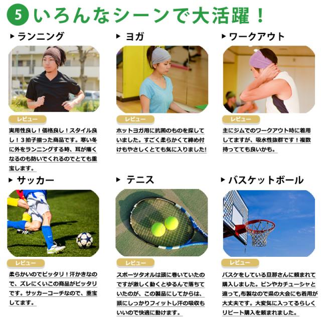 - 通勤時の自転車で、ヘルメットを付ける際に利用したり仕事で食品関係で全身白衣を着る際に使用しています。汗も止めることができニオイも気にならなくなりました。是非、追加購入したいと思います。