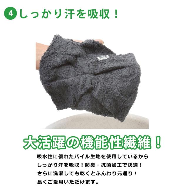 抗菌・抗ウイルス加工剤を使用したパイル地で、手洗いで洗濯可能なので、常に清潔に保てます。
