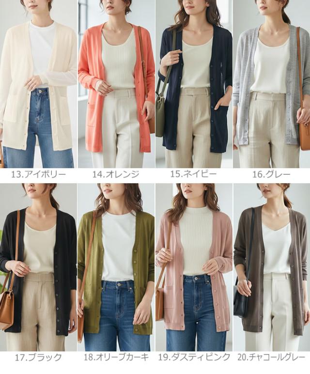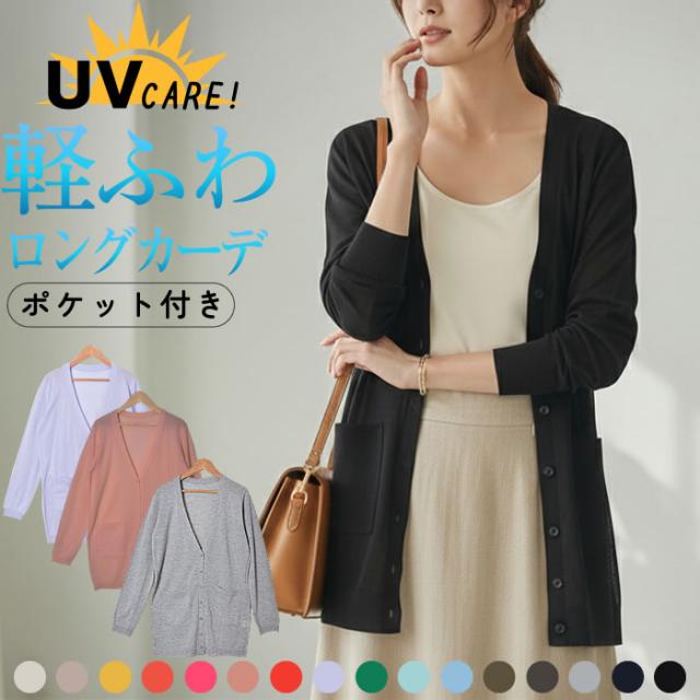 ロングカーディガン レディース 薄手 夏用 洗える 春夏 カーディガン 夏 オフィス ロング丈 春 薄手 50代 UV 春用 UVケア 長袖 ゆうメール便送料無料Vネック サマー パールボタン Vネックオールシーズンロングカーディガン