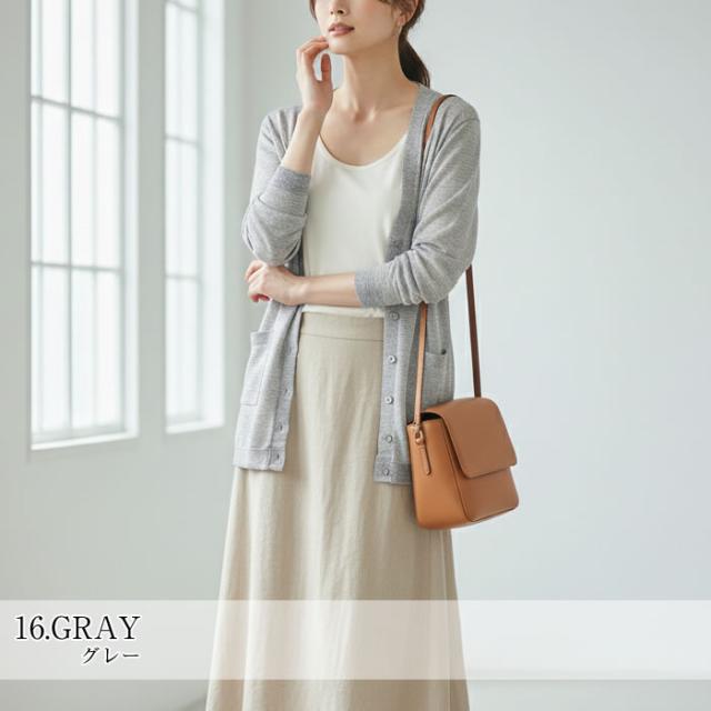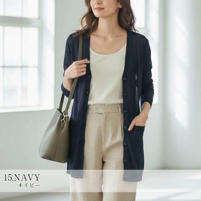 | 商品説明 | さらっと羽織れるロングカーディガン レディース向けの薄手素材で夏用はもちろん秋冬の重ね着にも活躍。UVケア仕様で日焼け防止や冷房対策に役立つ長袖Vネックデザイン。便利なポケット付きで実用性もあり、ウォッシャブルだから自宅で簡単にお手入れ可能。涼しい着心地と軽量なロング丈が体型カバーをサポートし、着痩せ効果も期待できます。オフィスからカジュアルまで合わせやすいシンプルなおしゃれ感が魅力。通年使いやすい大人カラーで大人女子の毎日に自然に馴染みます。さらりとした質感で季節の変わり目にも使いやすく、パンツにもスカートにも合わせやすいバランス。落ち着いた雰囲気を保ちつつ日常使いしやすく、外出や通勤など幅広いシーンに対応します。一枚あると着回しの幅が広がり、忙しい朝のコーデ選びにも便利です。※入荷時期によりサイズが多少前後する場合がございます。予めご了承ください。 |