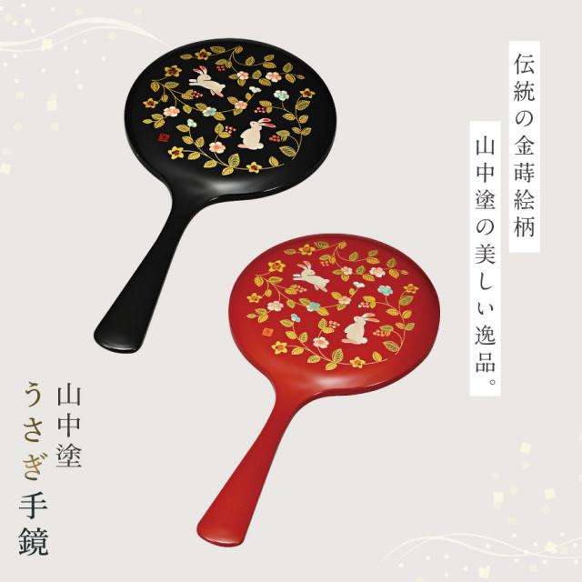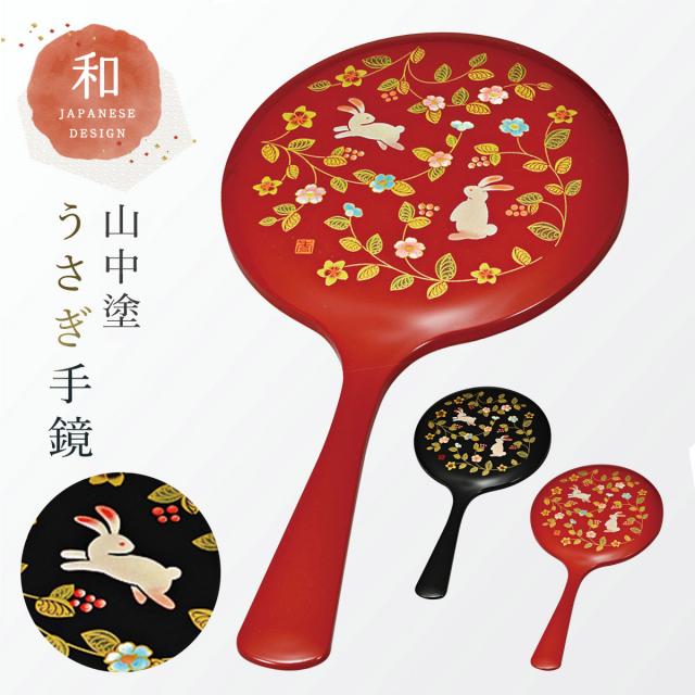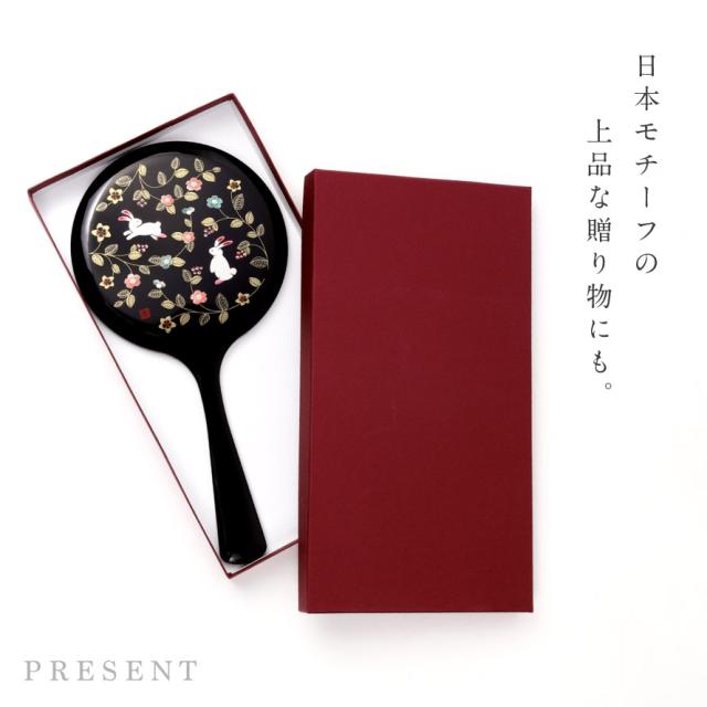 手鏡 ハンドミラー 山中塗 花の小路 誕生日プレゼント 母 祖母 女性 50代 60代 70代 80代 敬老の日 ギフト 高級 うさぎ 和柄 漆芸 蒔絵 おしゃれ