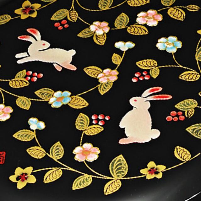 日本の伝統的な絵柄を金蒔絵で仕上げた、高級感のある手鏡。可愛らしい小花とうさぎが上品に描かれた美しい絵柄。