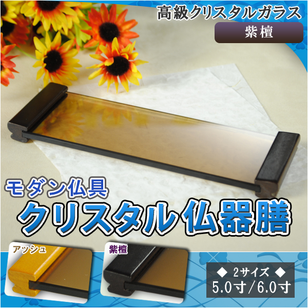 モダン【クリスタル仏器膳】6.0寸 天然木紫檀 仏壇仏具 ネコポス送料無料
