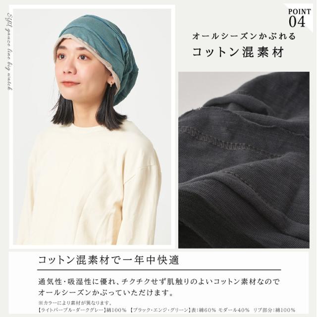 - ガンで髪の毛が抜けてしまった義母のために購入。普通の帽子でもこのようなスタイルの帽子はたくさんありますが、さすが医療用だけあって、髪の毛がないのがわからないようなシークレットなデザインになっていました。素材も柔らかく喜んでもらえました。髪の毛がないのは、年老いた母にとっても大ショックなものなので、救いの帽子です。3つ購入しましたが、カタログを見て、また夏用買いたいと思います。