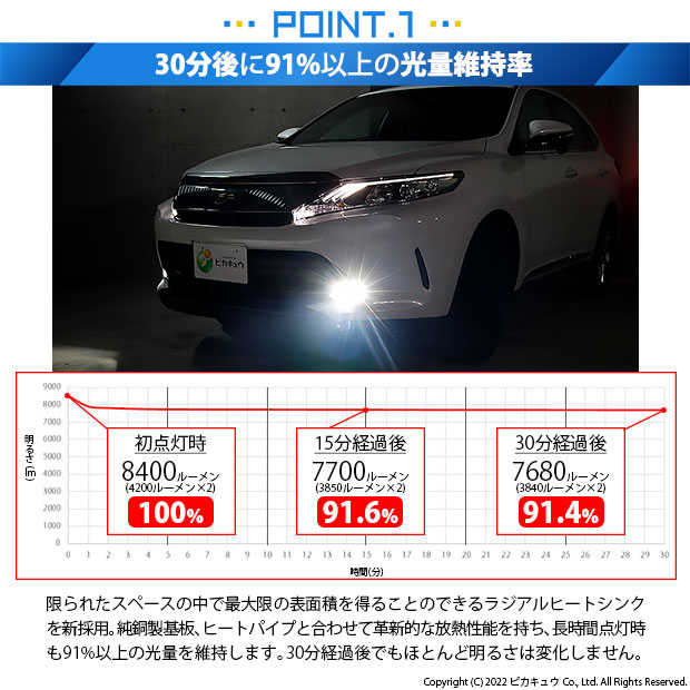 ※ルーメン値は、バルブ2個(車両一台分)の値を示しています。