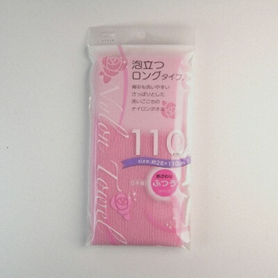 ボディタオル 泡立ちたっぷり 体洗い用 ナイロンタオル ロング 110cm ふつう ピンク 日本製【メール便 送料無料】