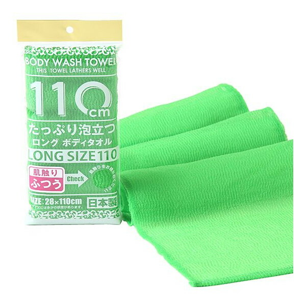 ボディタオル 体洗い用タオル たっぷり泡立つ ナイロンタオル 28×110cm ふつう グリーン【メール便 送料無料】