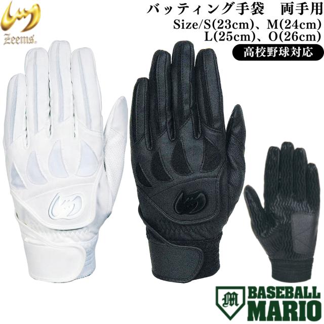 ジームス Zeems バッティング手袋 両手用 一般 ホワイト ブラック 野球 バッティンググローブ バッティンググラブ 高校野球対応 中学生 高校生 ZER-610W
