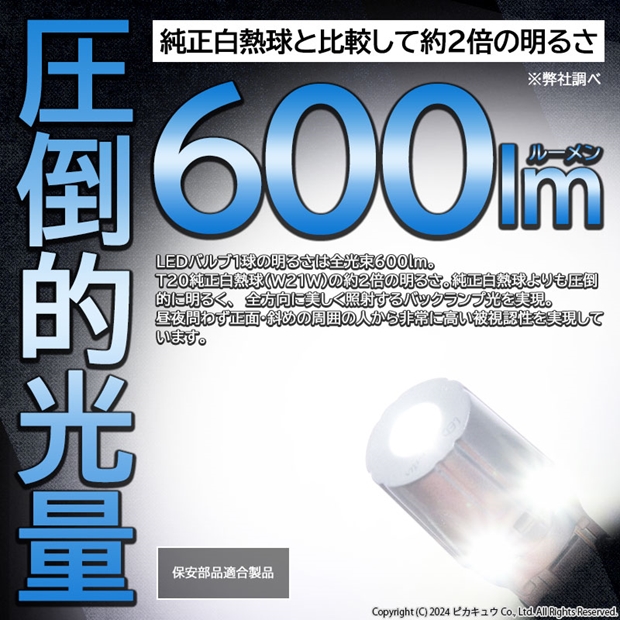 明るさ:600lm 色:ホワイト[6500K] 規格:T20シングル[W21W]