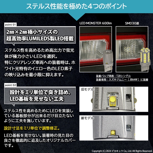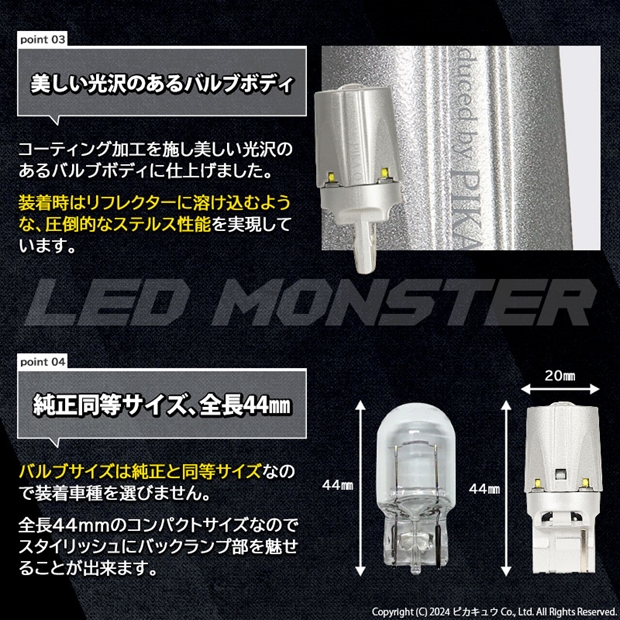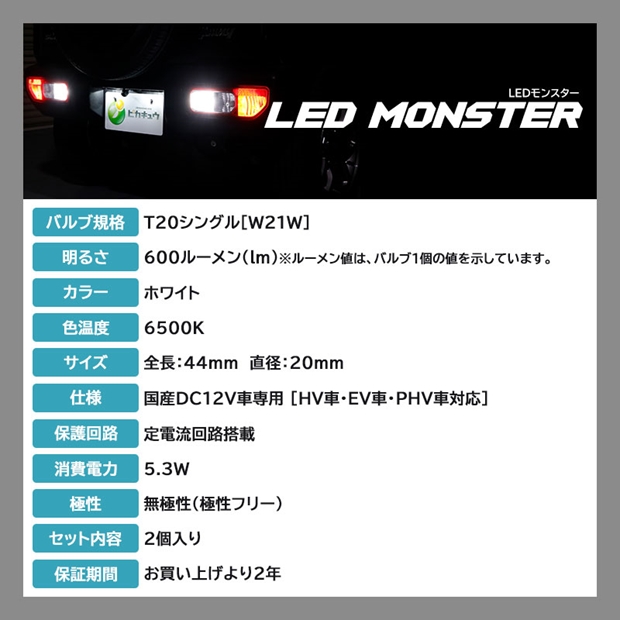 ピカキュウ,LED専門店ピカキュウ,LED,バックランプ,後退灯,LED MONSTER,LEDモンスター,t20,T20シングル,ウェッジ球,w21w,白色,6500k,ホワイト,トヨタ,TOYOTA PRIUS,30プリウス,プリウス,ZVW30,後期