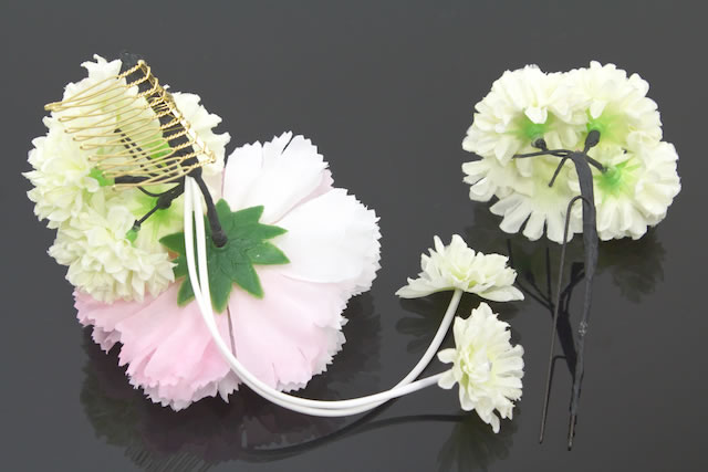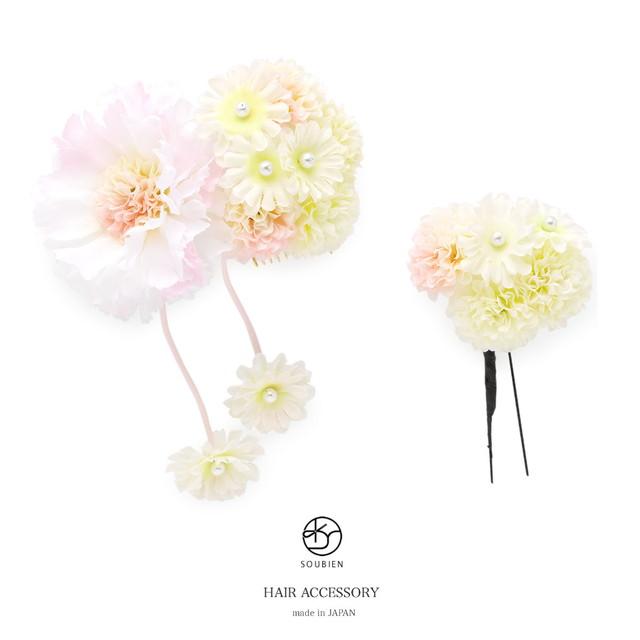 成人式 髪飾り 成人式の髪飾り 2点セット アイボリー ペールピンク 牡丹 雛菊 コーム Uピン ヘアアクセサリー 髪留め 振袖 袴 卒業式 和装