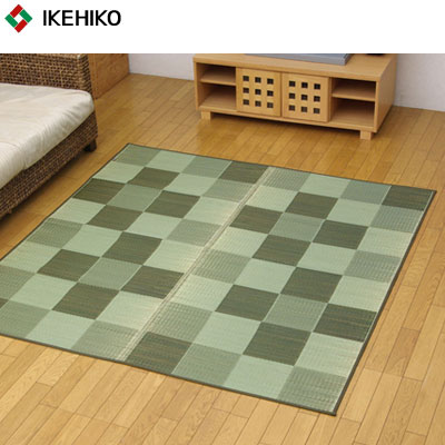 【送料無料】イケヒコ・コーポレーション 純国産 い草花ござカーペット ブロック グリーン 江戸間2畳(約174×174cm) 4117602