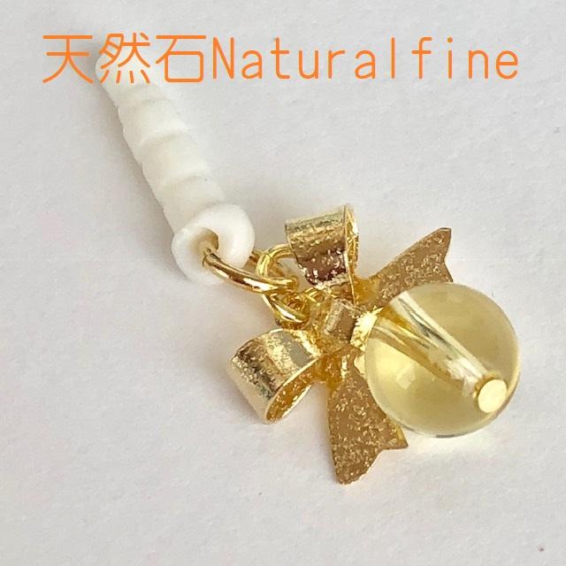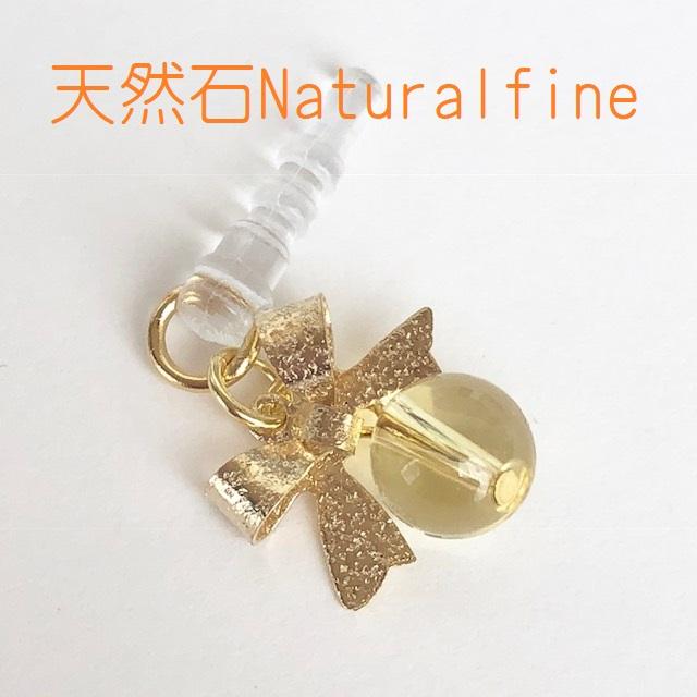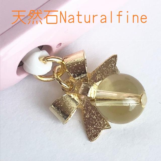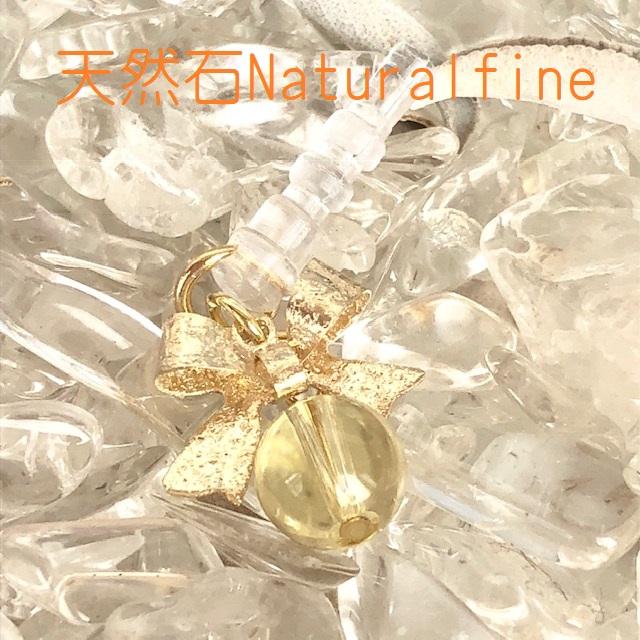 イヤホンジャック アンドロイド iphone 天然石 シトリン スマホピアス リボン パワーストーン 金運 黄水晶