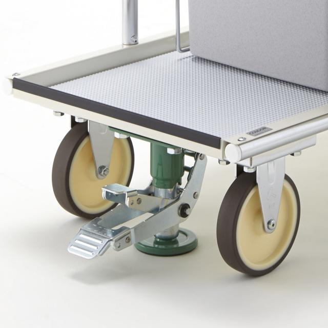 脚で踏むだけでブレーキが掛けられ、作業が安全に行えます。