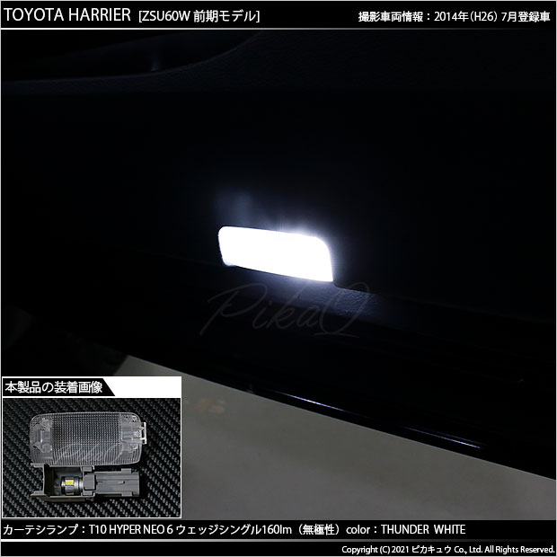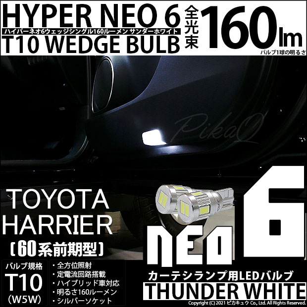 LED,ピカキュウ,LEDバルブ専門店,SMD,T10ウェッジ,HYPER NEO 6ウェッジシングル球,サンダーホワイト,カーテシランプ,ドアカーテシランプ,トヨタ,60系ハリアー,ハリアー,TOYOTA,HARRIER,ZSU60,ASU60,前期,