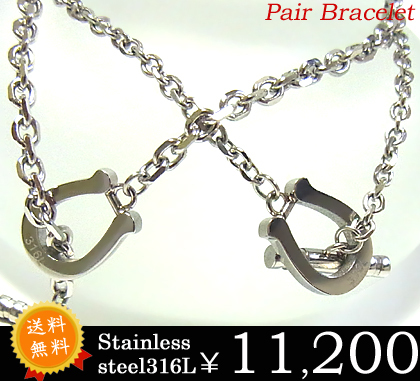 送料無料 ペアブレスレット/ステンレススチール/
