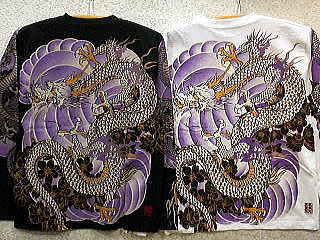 カラクリ魂 和柄 長袖Tシャツ 龍神刺青プリント KARAKURI
