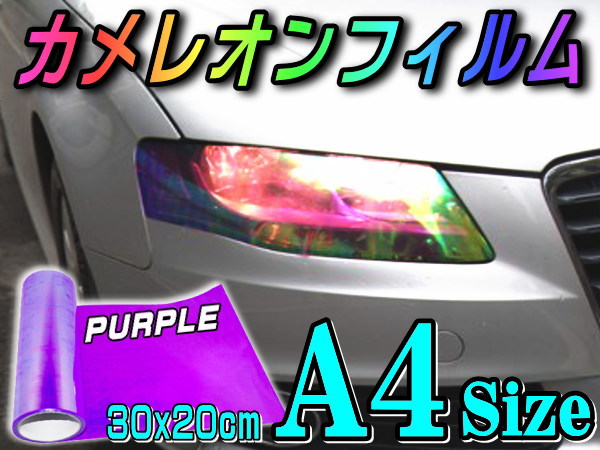 カメレオンフィルム (A4) 紫 幅30cm×20cm A4サイズ パープル カラーフィルム レンズフィルム スモーク テール ランプ 貼り方 保護 プラズマ マジョーラ レインボー ライト クリスタル クリア プロテクションフィルム シート ヘッドライトフィルム