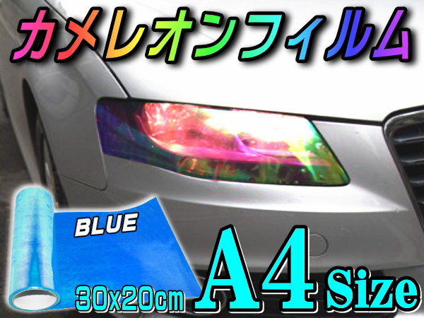 カメレオンフィルム (A4) 青 幅30cm×20cm A4サイズ ブルー カラーフィルム レンズフィルム スモーク テール ランプ 貼り方 保護 プラズマ マジョーラ レインボー ライト クリスタル クリア プロテクションフィルム シート ヘッドライトフィルム