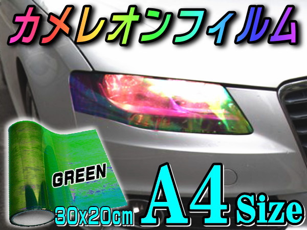 カメレオンフィルム (A4) 緑 幅30cm×20cm A4サイズ グリーン カラーフィルム レンズフィルム スモーク テール ランプ 貼り方 保護 プラズマ マジョーラ レインボー ライト クリスタル クリア プロテクションフィルム シート ヘッドライトフィルム
