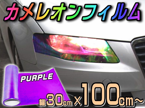 カメレオンフィルム (大) 紫 幅30cm×100cm〜 長さ1m 延長可能 パープル カラーフィルム レンズフィルム スモーク テール ランプ 貼り方 保護 プラズマ マジョーラ レインボー ライト クリスタル クリア プロテクションフィルム シート ヘッドライトフィルム