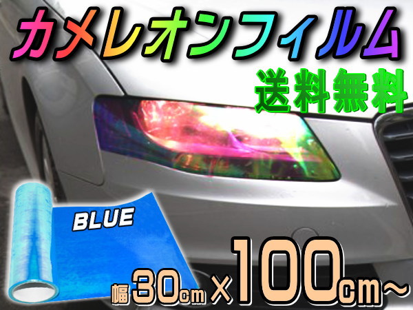 カメレオンフィルム (大) 青 【宅急便 送料無料】 幅30cm×100cm〜 長さ1m 延長可能 ブルー カラーフィルム レンズフィルム スモーク テール ランプ 貼り方 保護 マジョーラ レインボー ライト クリスタル クリア プロテクションフィルム