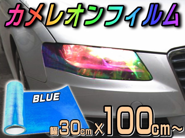 カメレオンフィルム (大) 青 幅30cm×100cm〜 長さ1m 延長可能 ブルー カラーフィルム レンズフィルム スモーク テール ランプ 貼り方 保護 プラズマ マジョーラ レインボー ライト クリスタル クリア プロテクションフィルム シート ヘッドライトフィルム