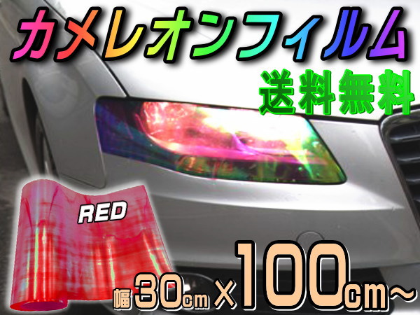 カメレオンフィルム (大) 赤 【宅急便 送料無料】 幅30cm×100cm〜 長さ1m 延長可能 レッド カラーフィルム レンズフィルム スモーク テール ランプ 貼り方 保護 マジョーラ レインボー ライト クリスタル クリア プロテクションフィルム シート