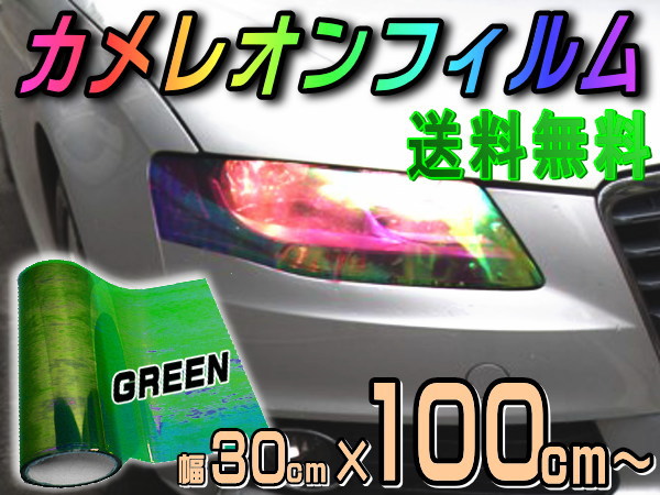 カメレオンフィルム (大) 緑 【宅急便 送料無料】 幅30cm×100cm〜 長さ1m 延長可能 グリーン カラーフィルム レンズフィルム スモーク テール ランプ 貼り方 保護 マジョーラ レインボー ライト バイク クリア プロテクションフィルム シート