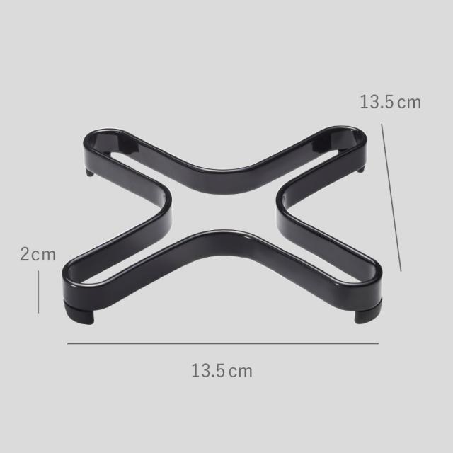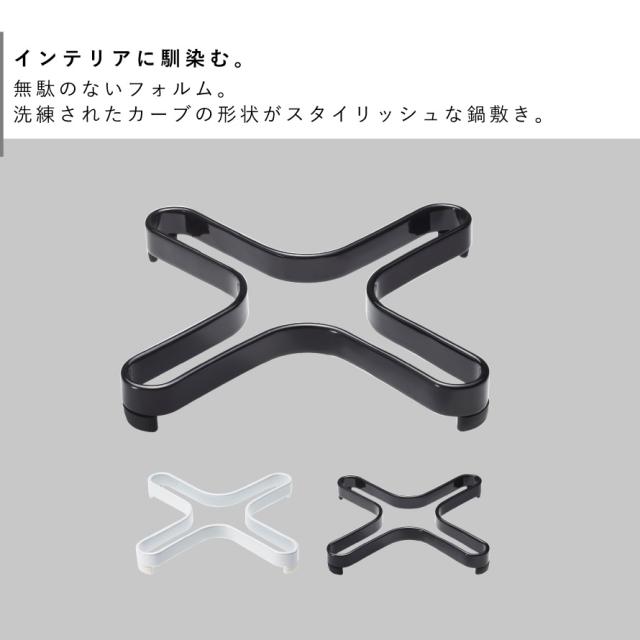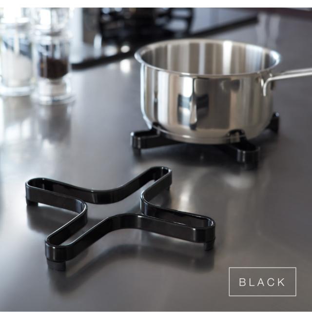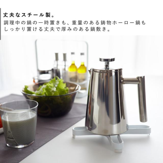 洗練されたカーブの形状がスタイリッシュな鍋敷き。丈夫なスチール製。調理中の鍋の一時置きも、重量のある鋳物ホーロー鍋もしっかり置ける、厚みもある鍋敷きです。接地面はシリコン素材なのでしっかり安定。