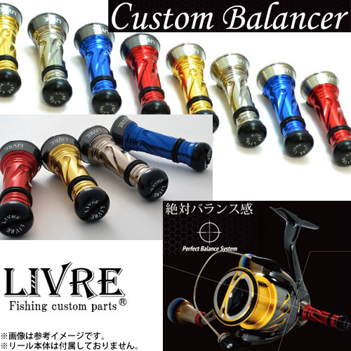 LIVREでは、スピニングリールハンドルの反対側に、工具なしで簡単に装着できるカスタムバランサーを開発。