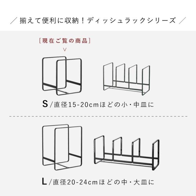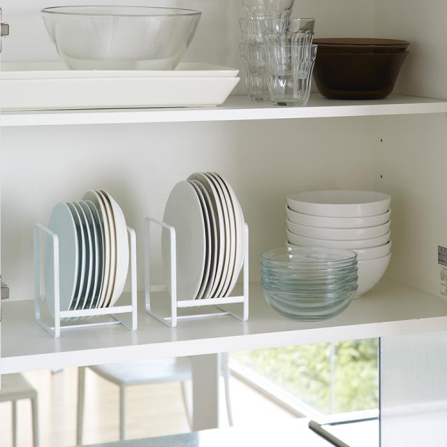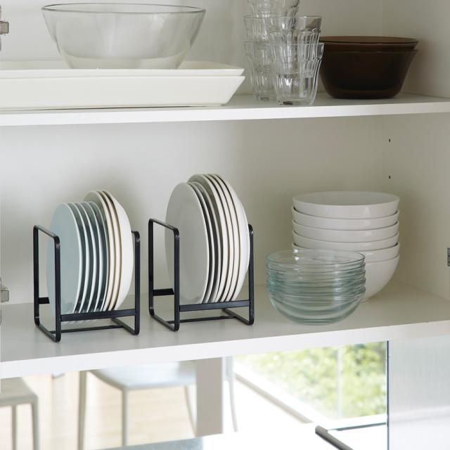 お皿を立てて収納、出し入れがスムーズなディッシュラック。15〜20cmほどの小皿や中皿にちょうどよいサイズ。